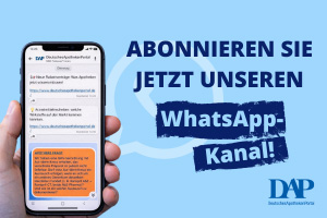 In unserem neuen WhatsApp-Kanal erhalten Sie regelmäßig Informationen zur retaxsicheren Rezeptbelieferung, Beratung in der Apotheke und Arzneimittelabgabe.