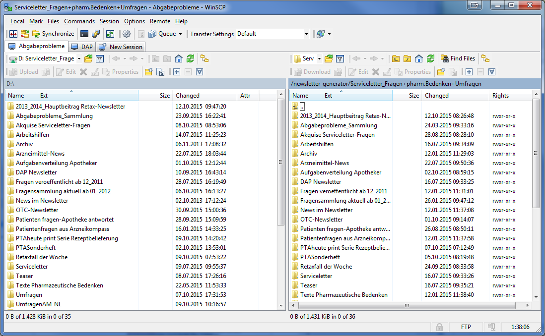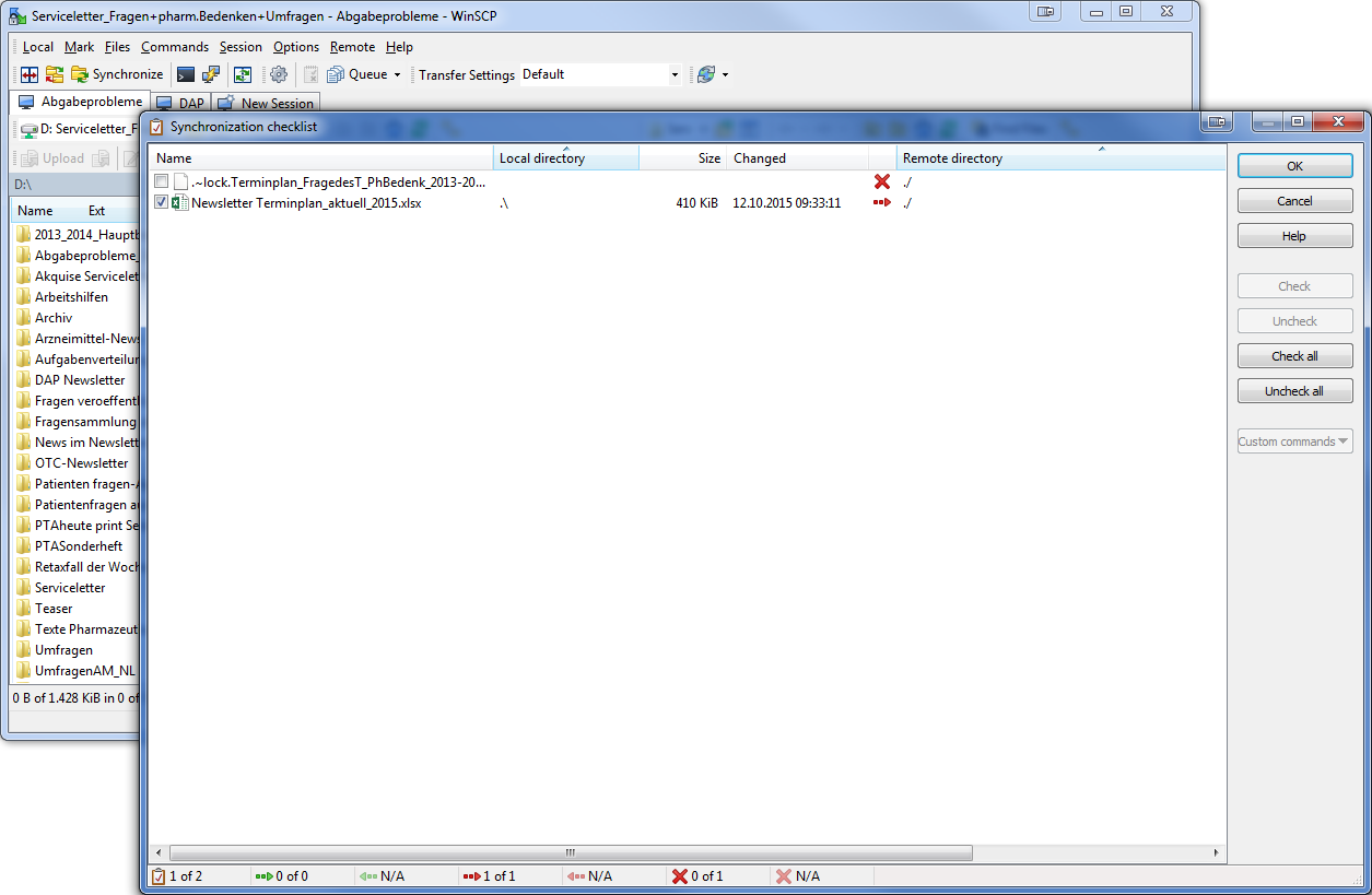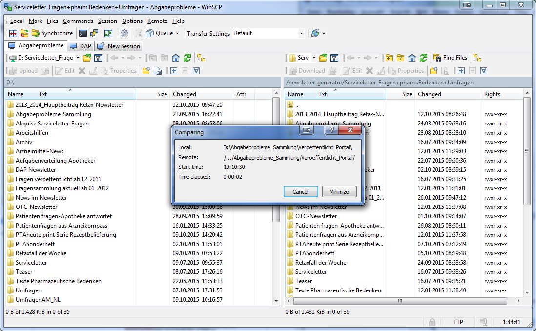 WinSCP und Verbindung Abgabeprobleme öffnen
