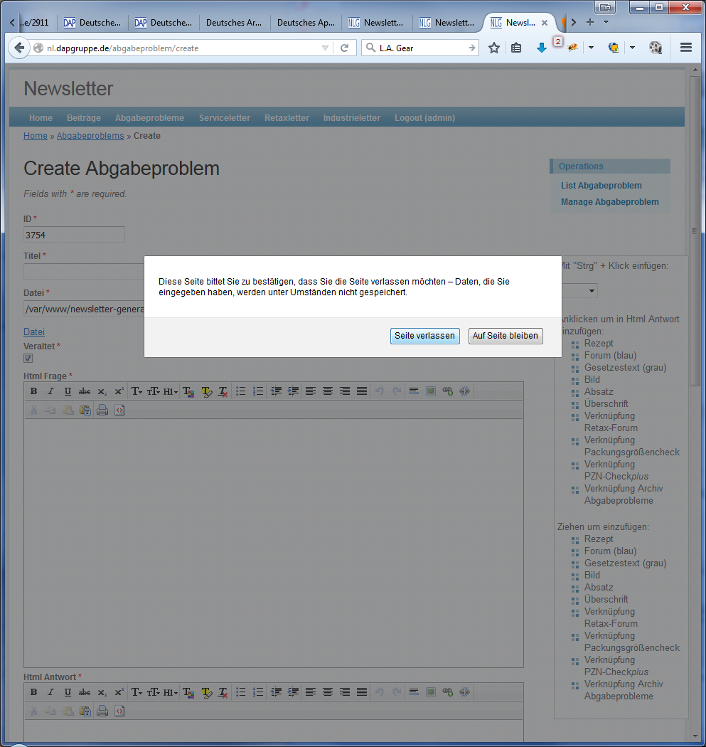 Nach dem Klick auf die Verknüpfung "Datei" im erschienen Fenster auf "Seite verlassen" klicken.