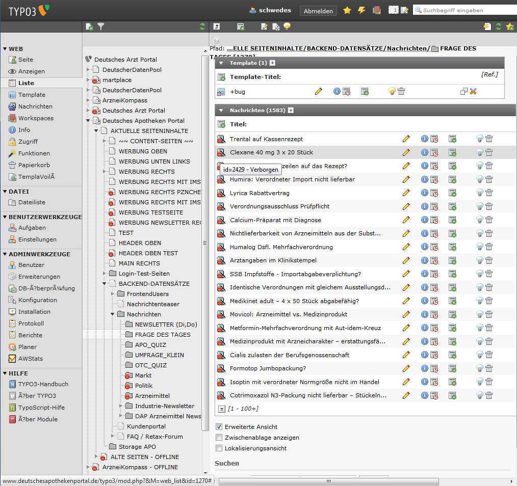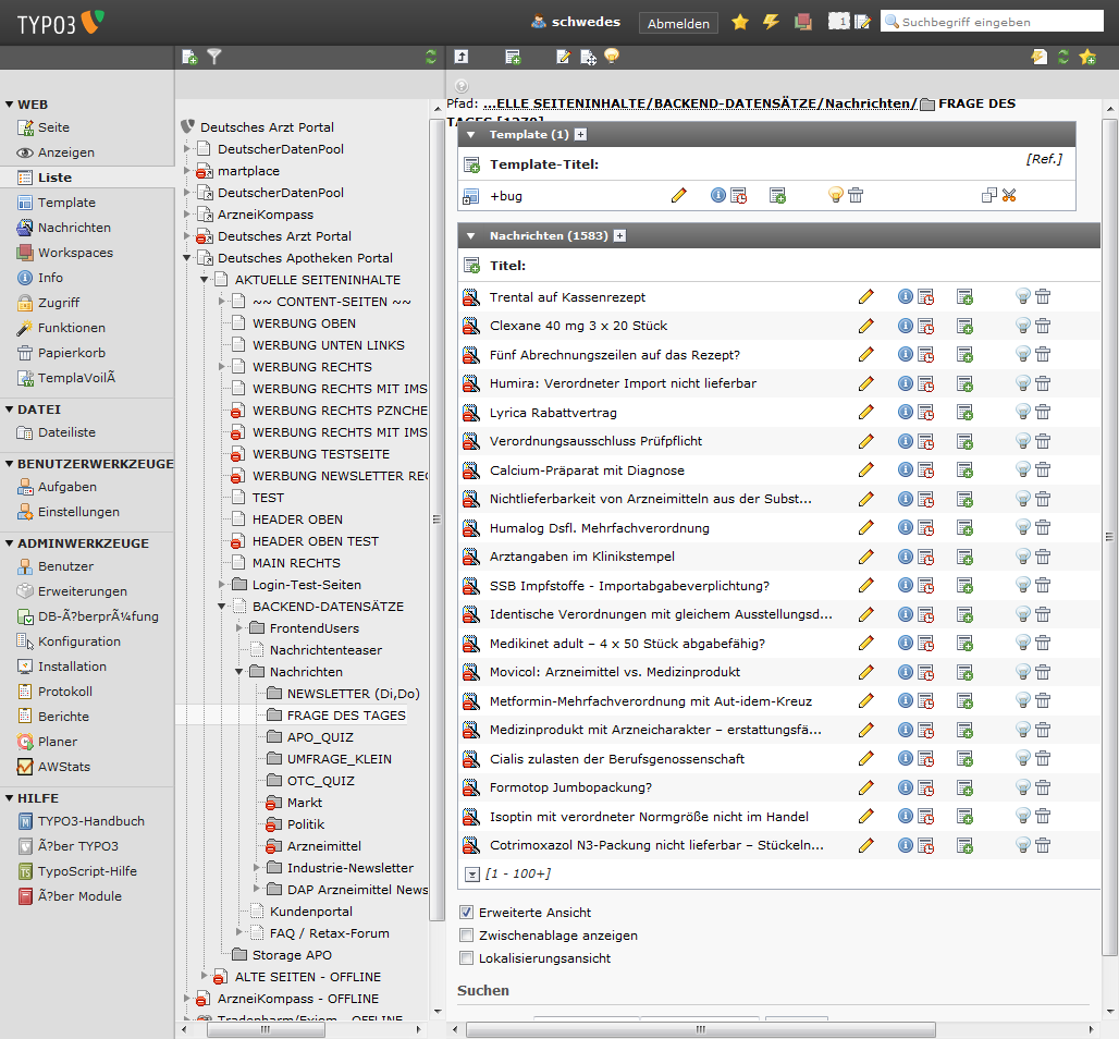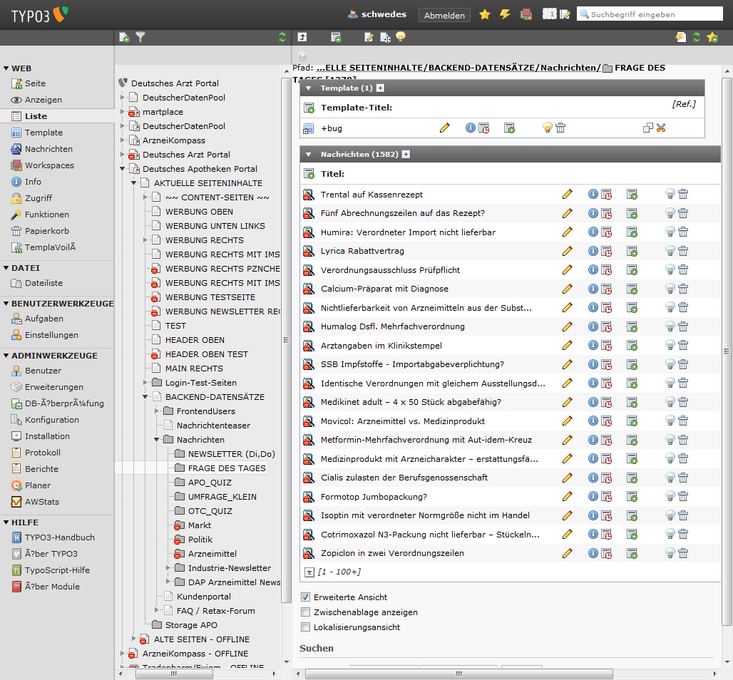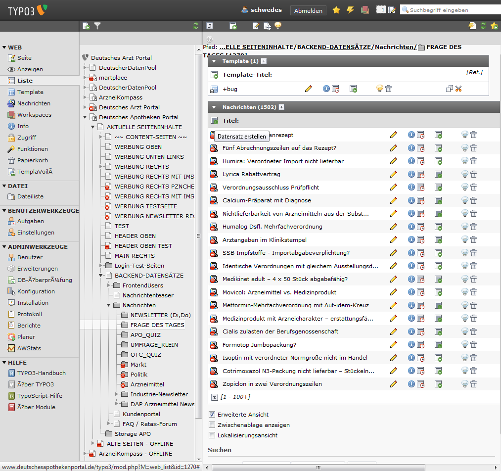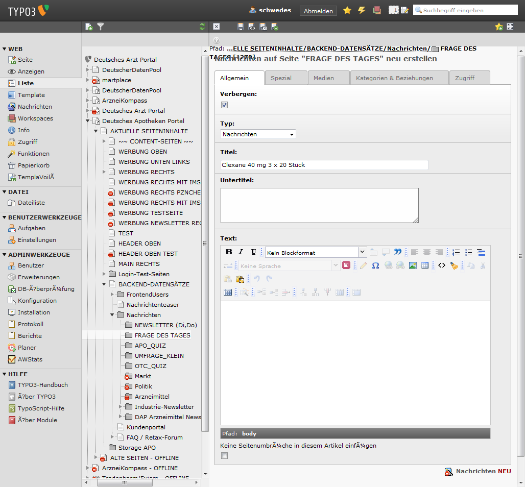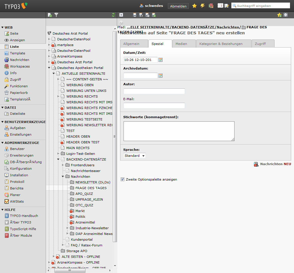 In typo3 ins Verzeichnis "FRAGE DES TAGES" wechseln.