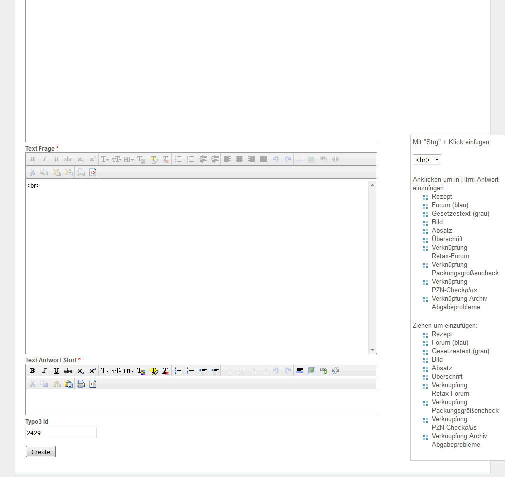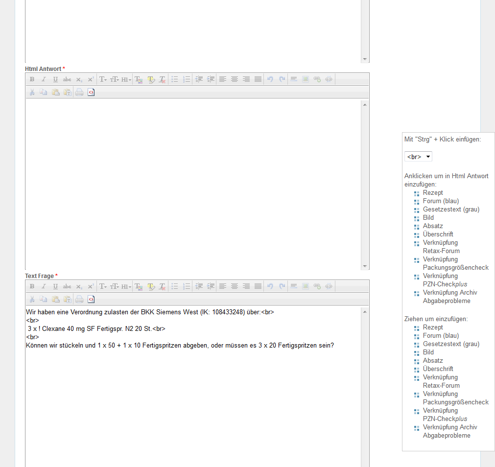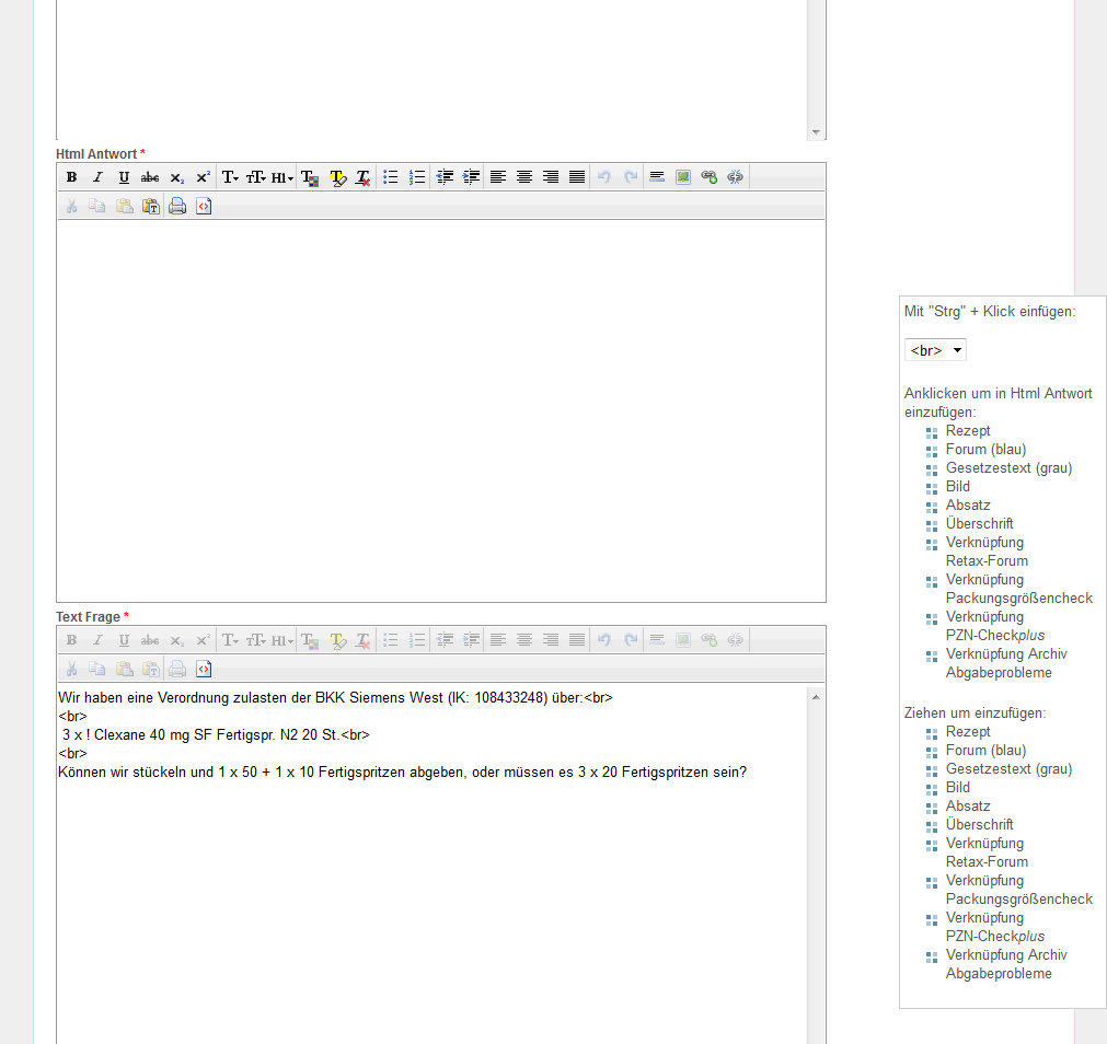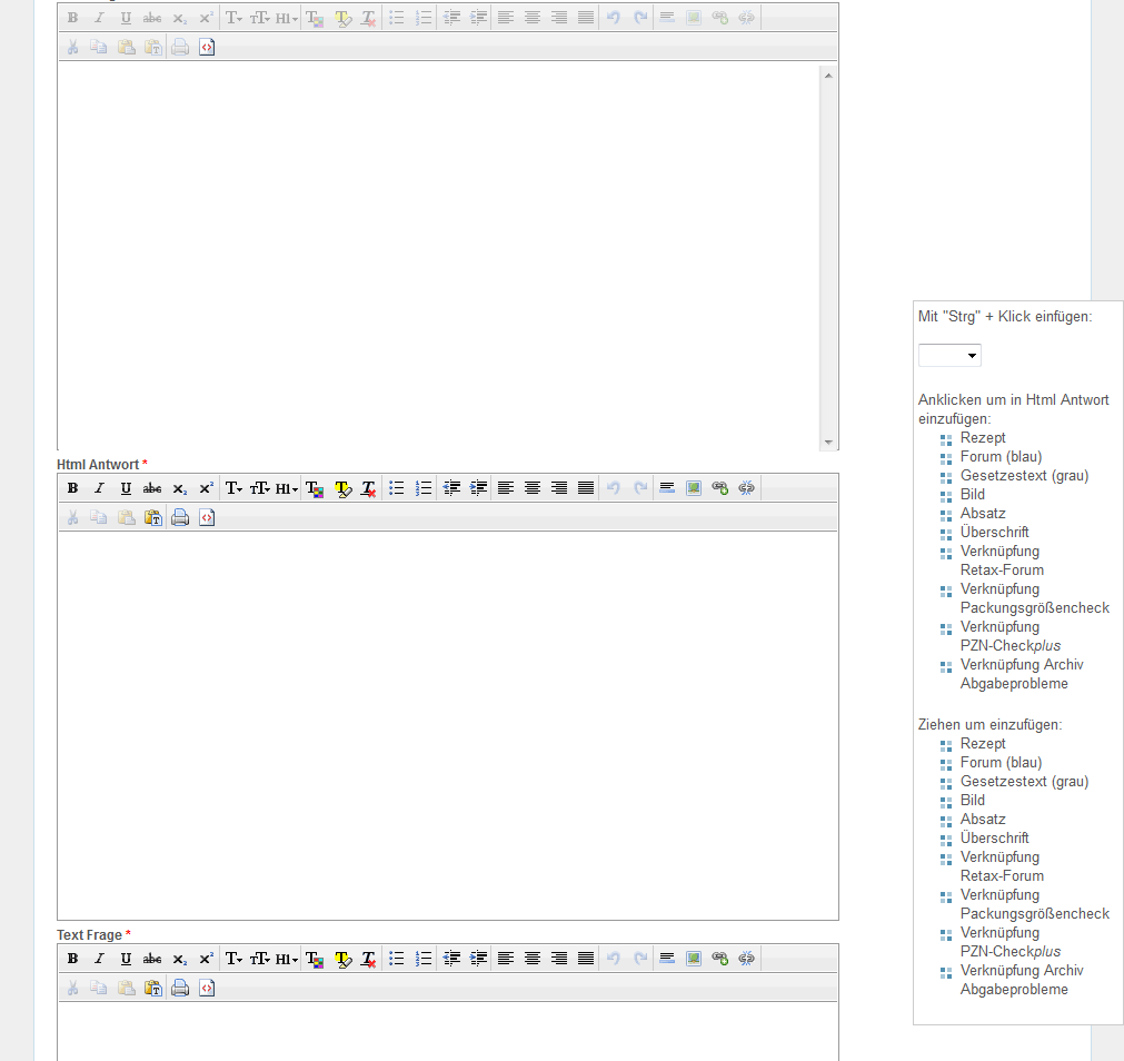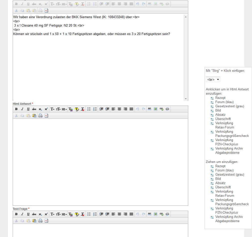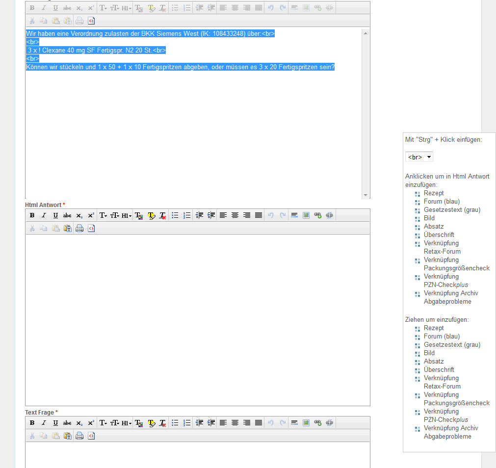 Zum Textfeld "Html Frage" wechseln und die Schaltfläche für HTML-Ansicht "<>" anklicken.