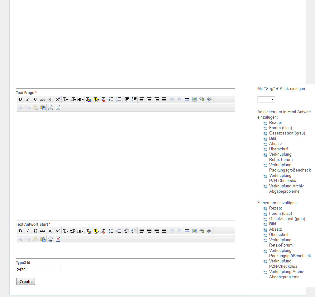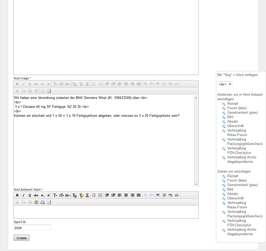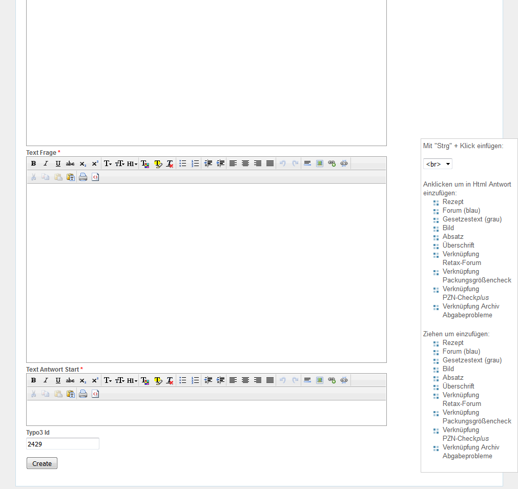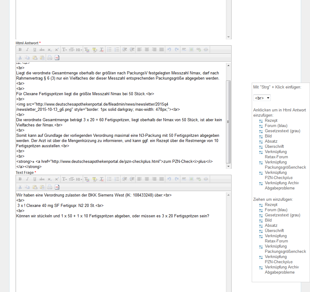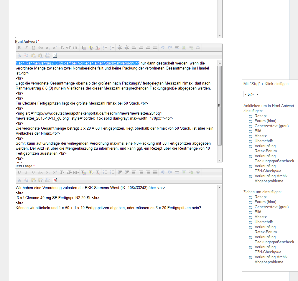 Zum Textfeld "Html Frage" wechseln und die Schaltfläche für HTML-Ansicht "<>" anklicken.