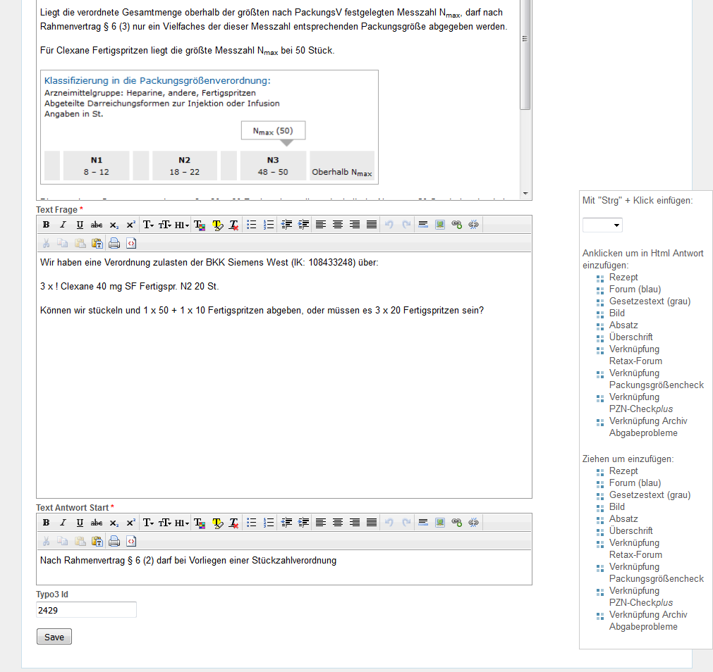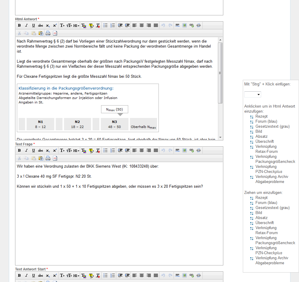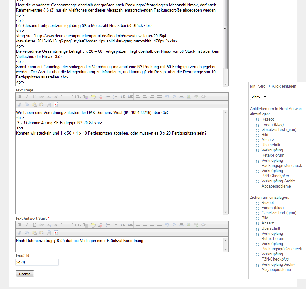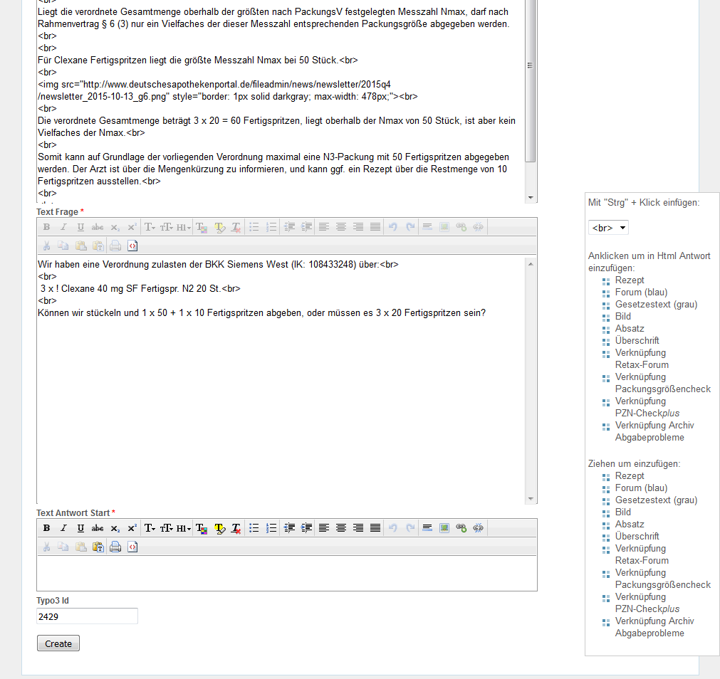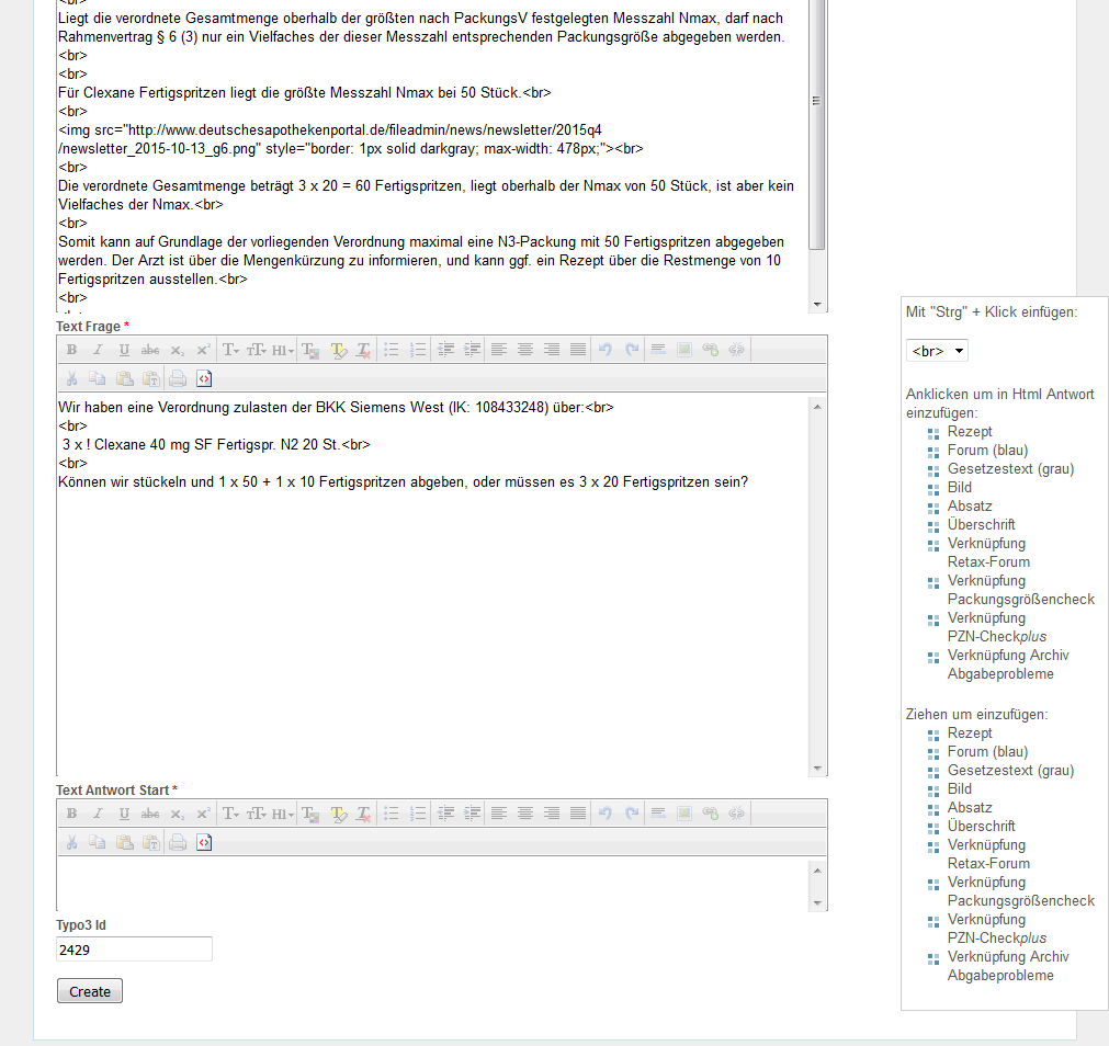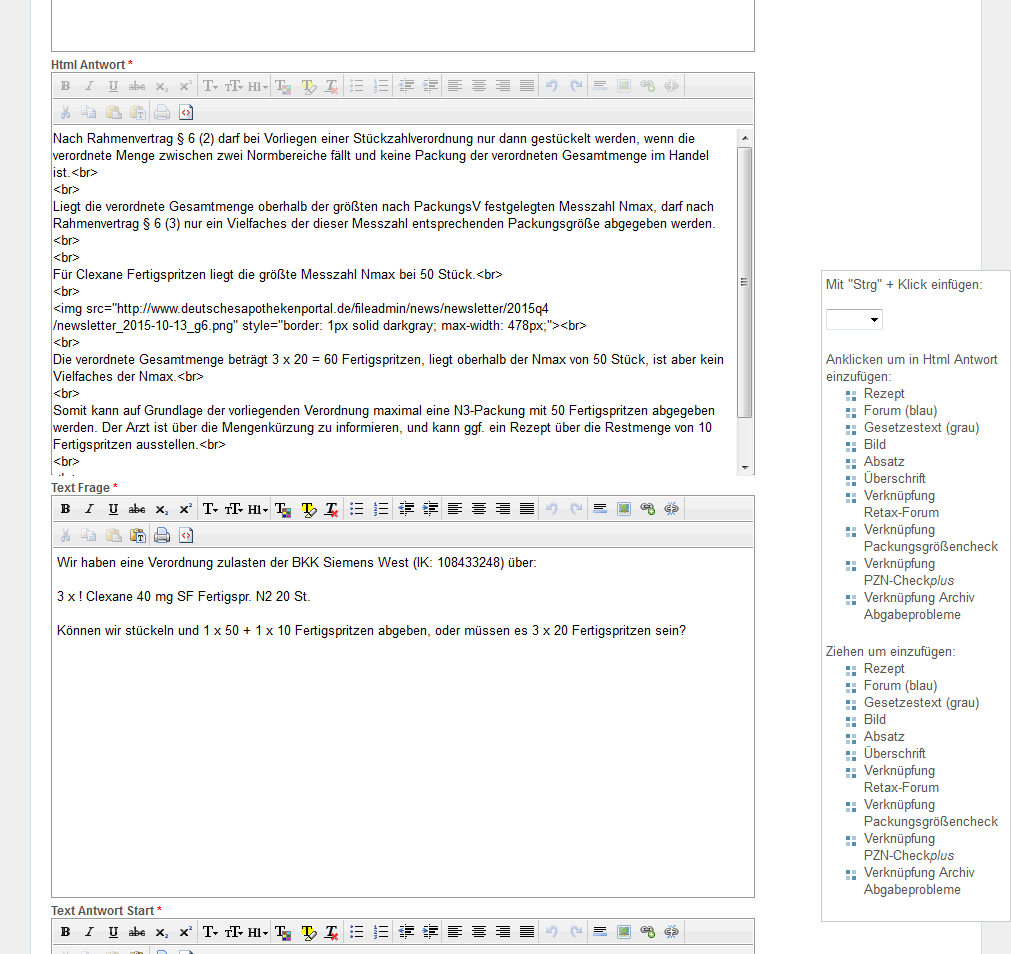 Zum Textfeld "Html Frage" wechseln und die Schaltfläche für HTML-Ansicht "<>" anklicken.