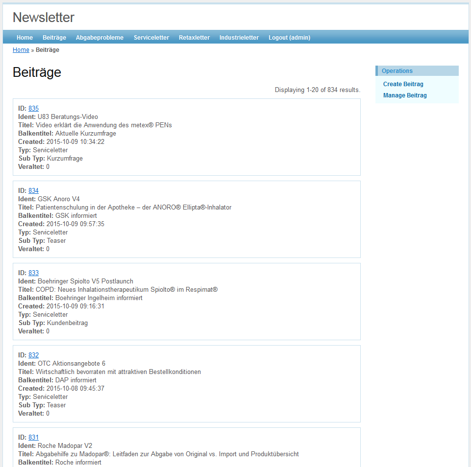 Auf den Reiter "Beiträge" wechseln und "Create Beitrag" anklicken.