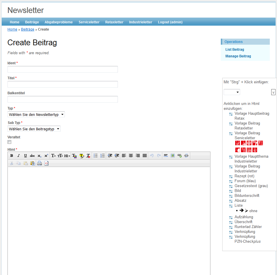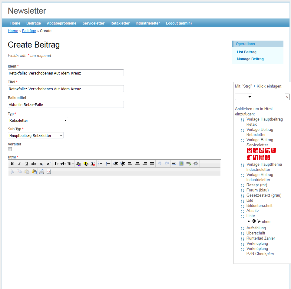 Das Formular zur Erstellung eines Beitrags wird angezeigt.