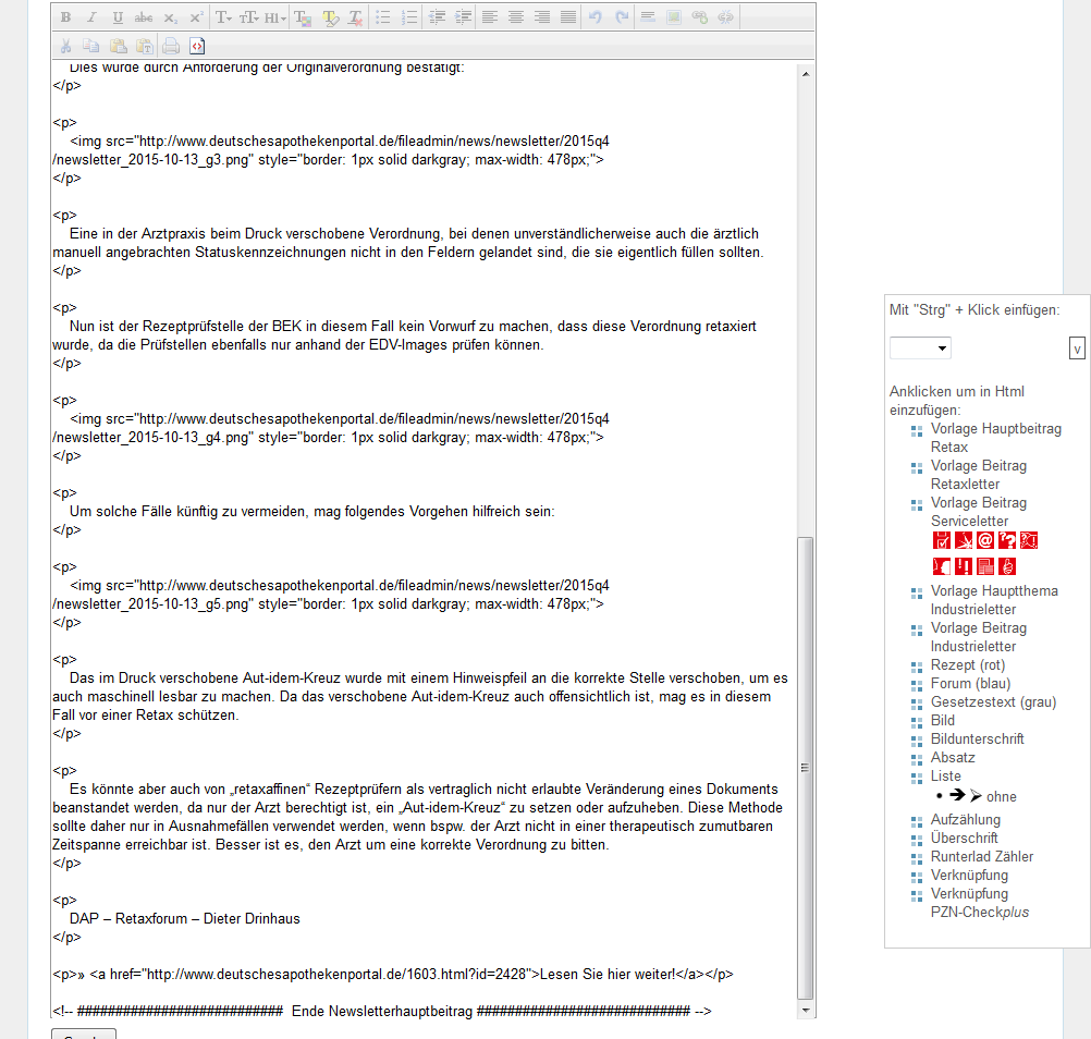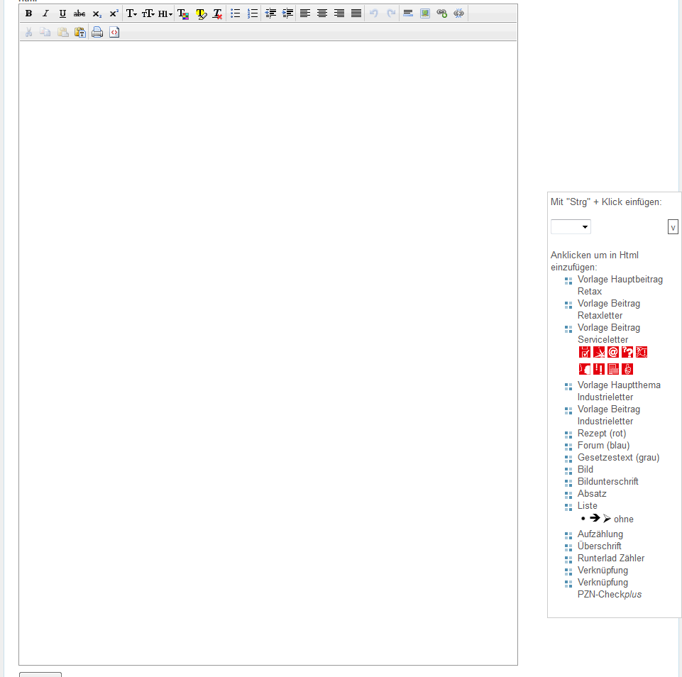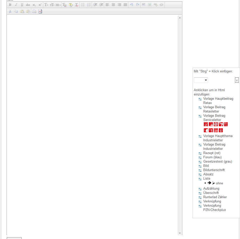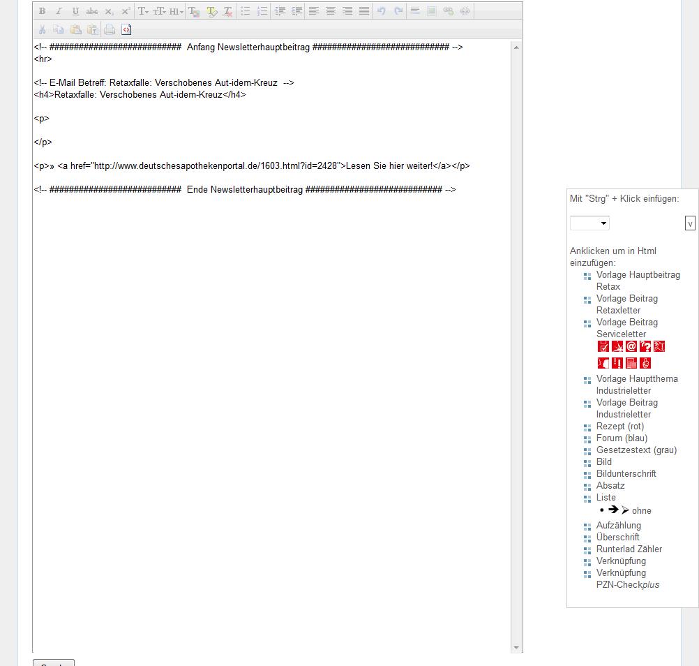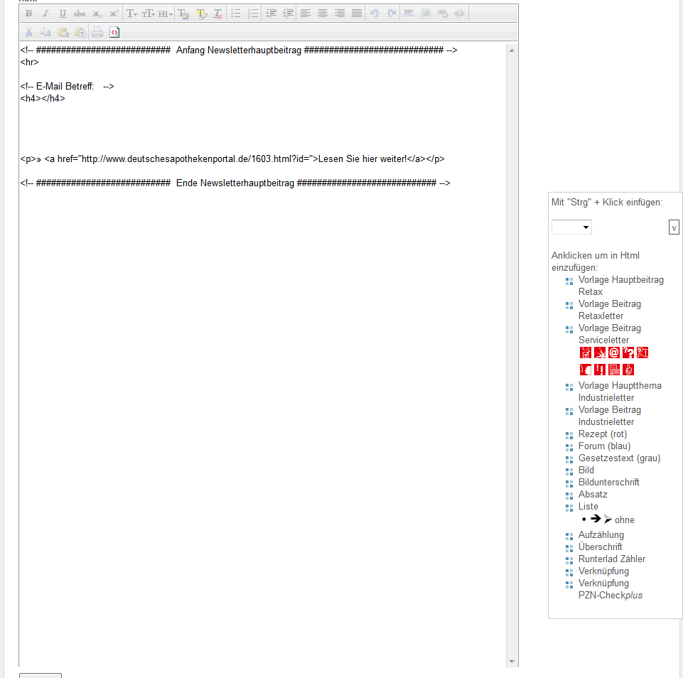 Über die Schaltfläche "v" im Vorlagen-Menü, wird der Fensterausschnitt auf das Textfeld "Html" verschoben.