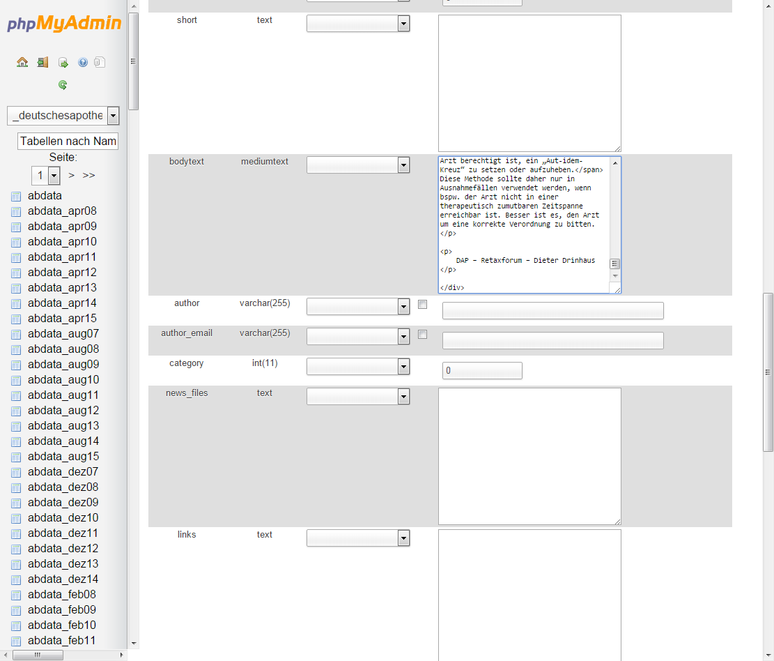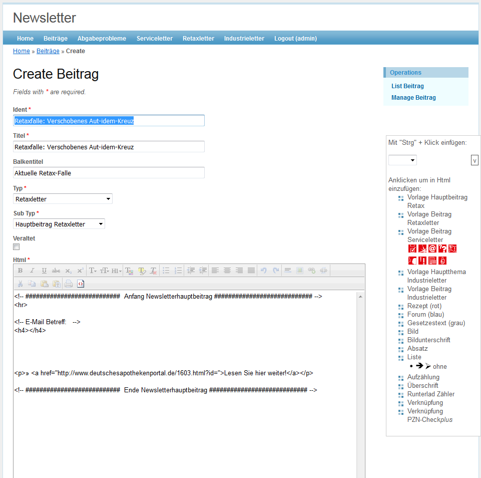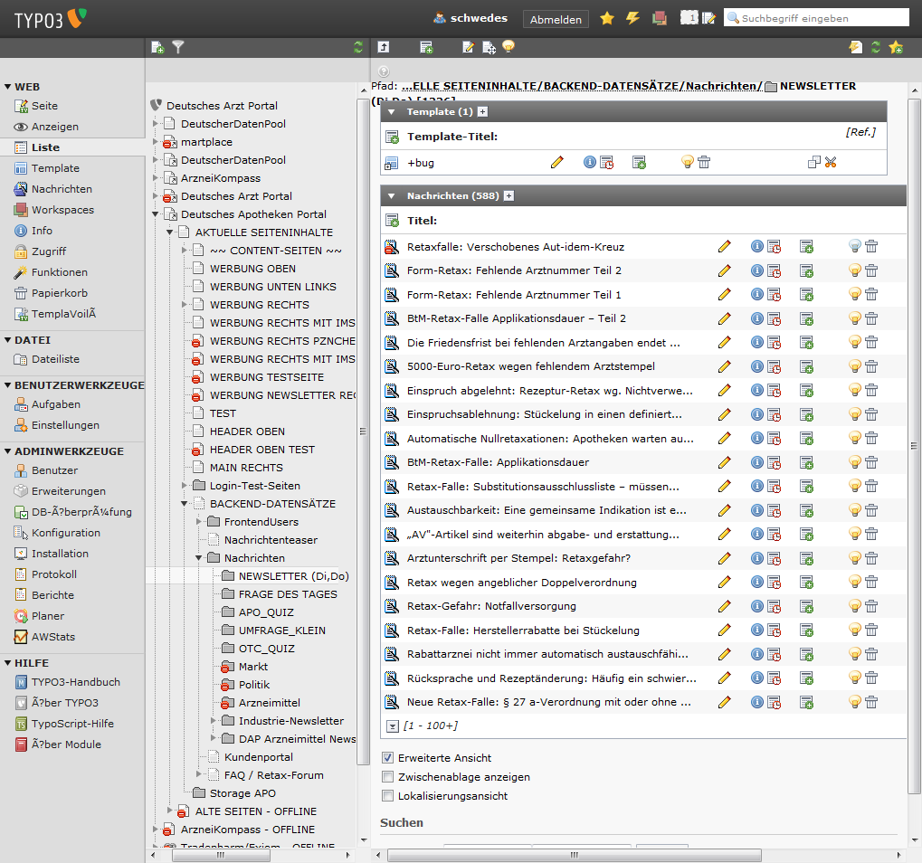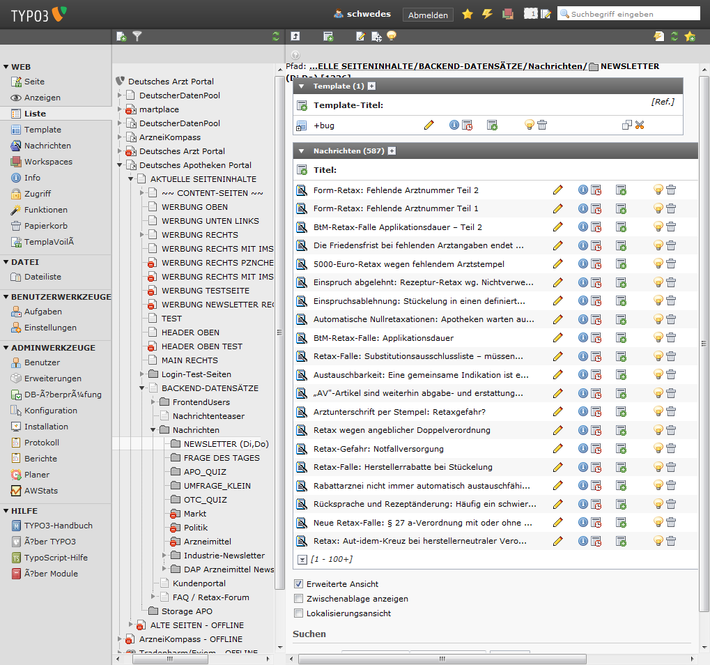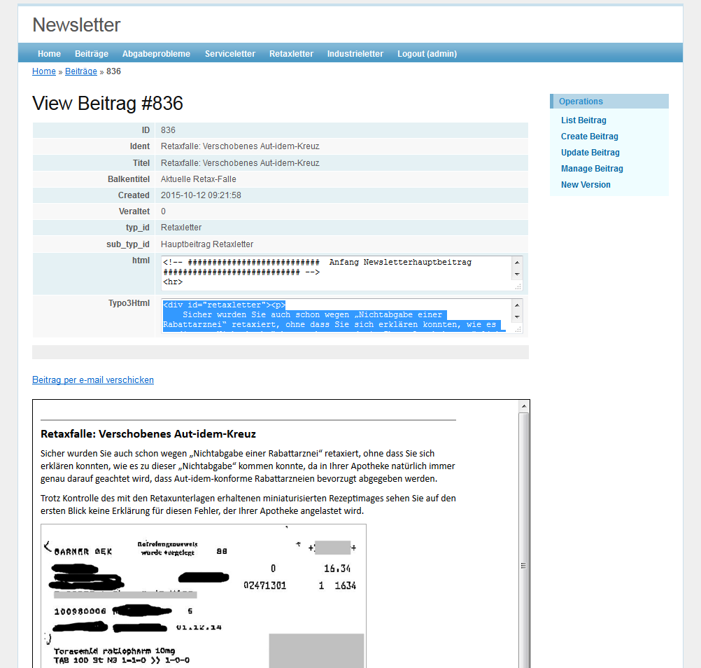 Im typo3 ins Verzeichnis "NEWSLETTER (Di, Do)" wechseln und einen neuen Datensatz anlegen.