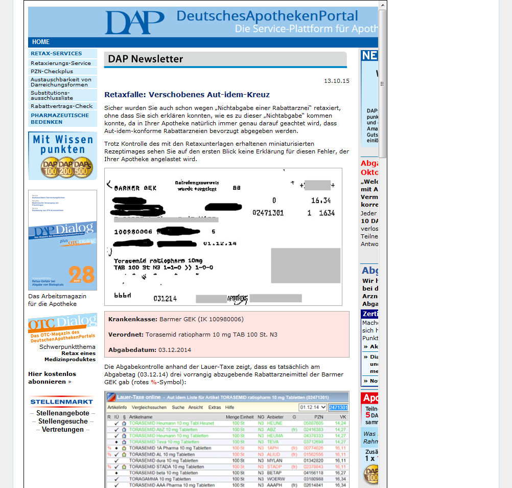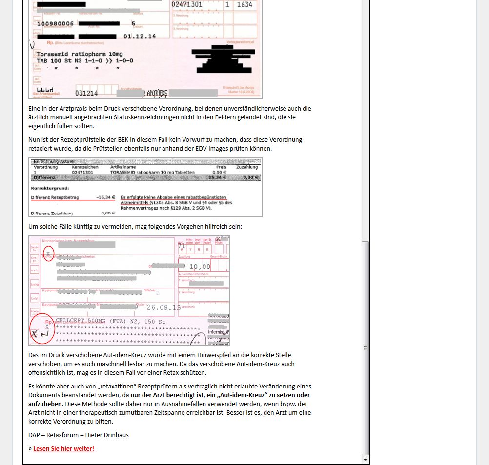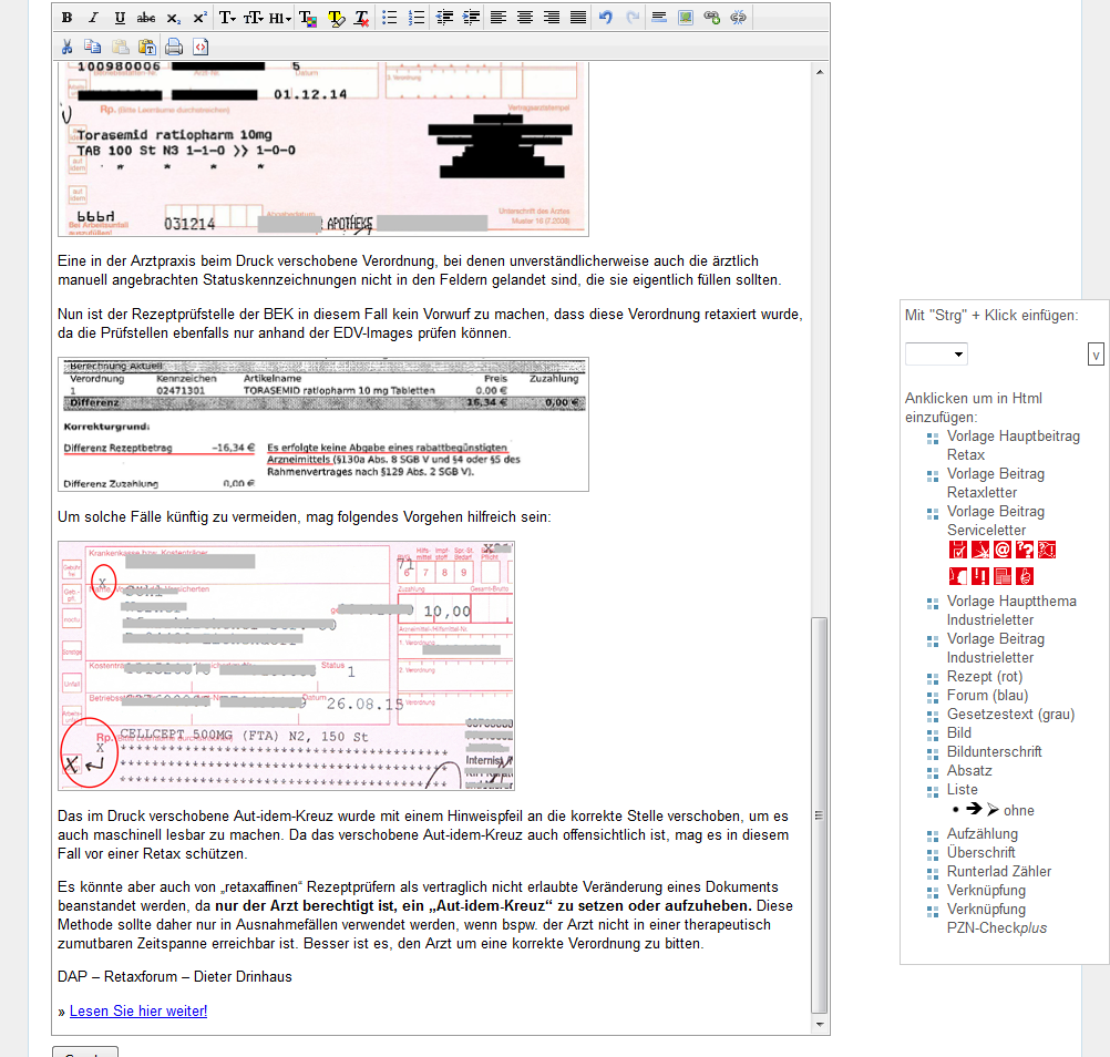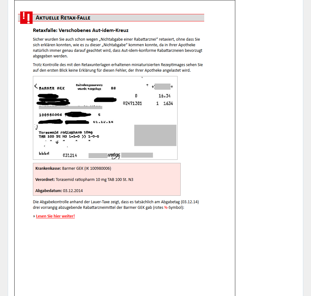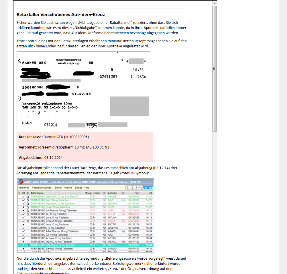 Im Retaxletter wird der Hauptbeitrag dann verkürzt angezeigt.