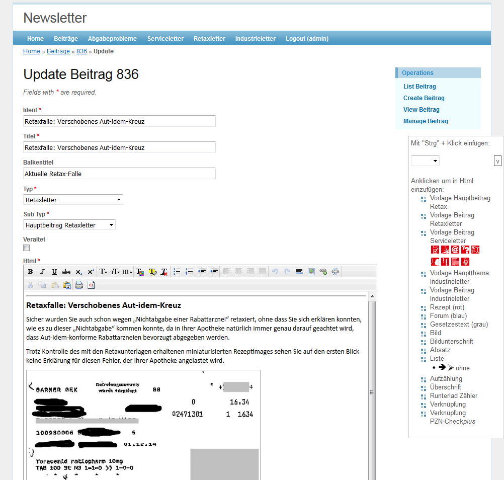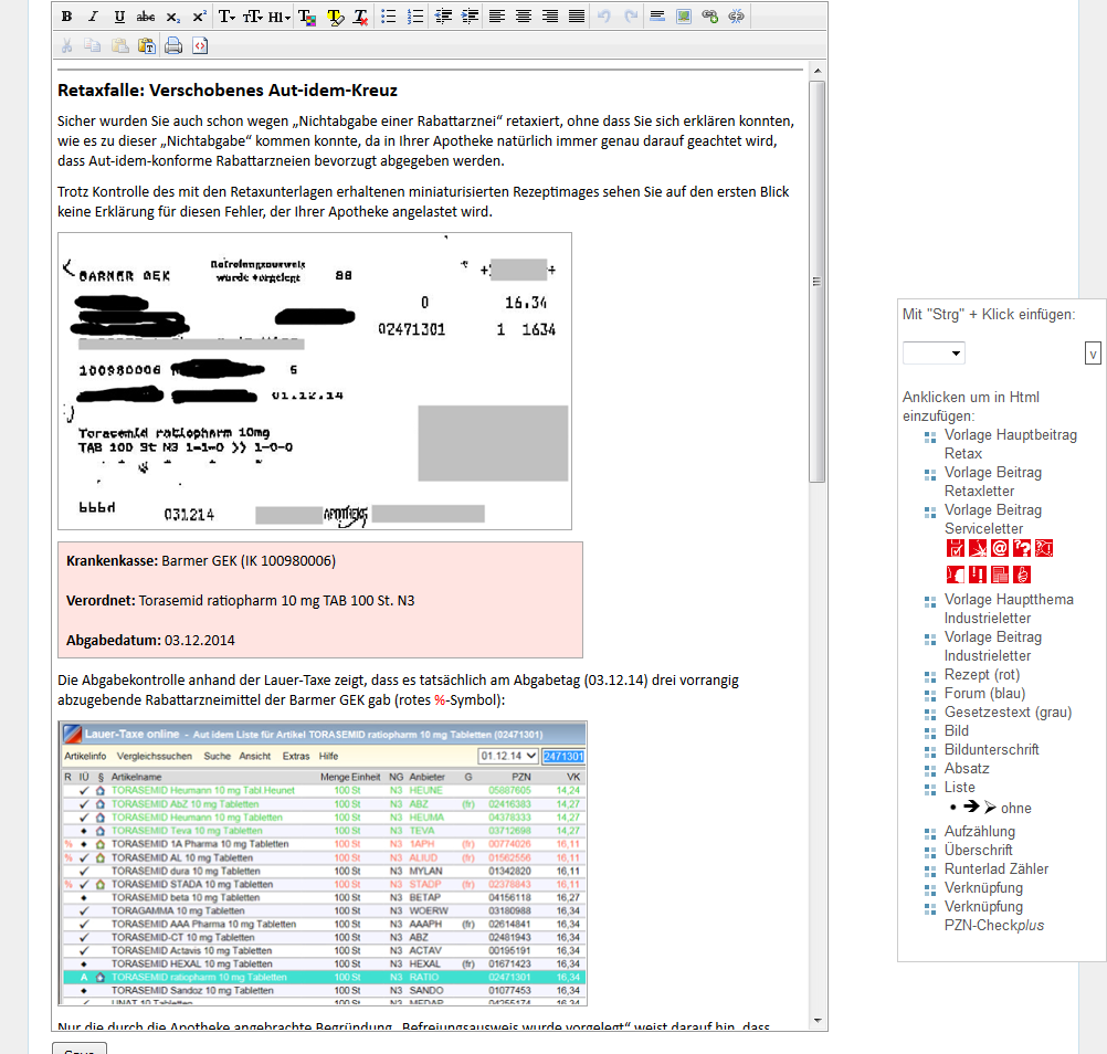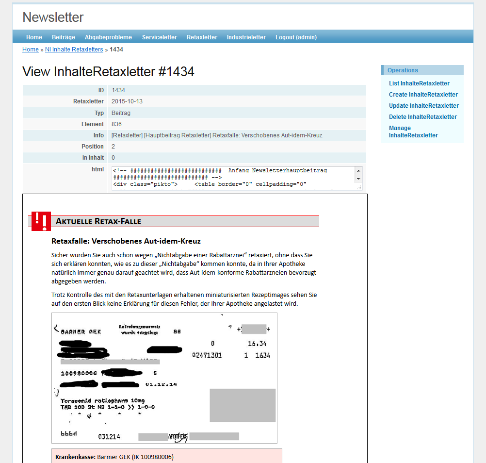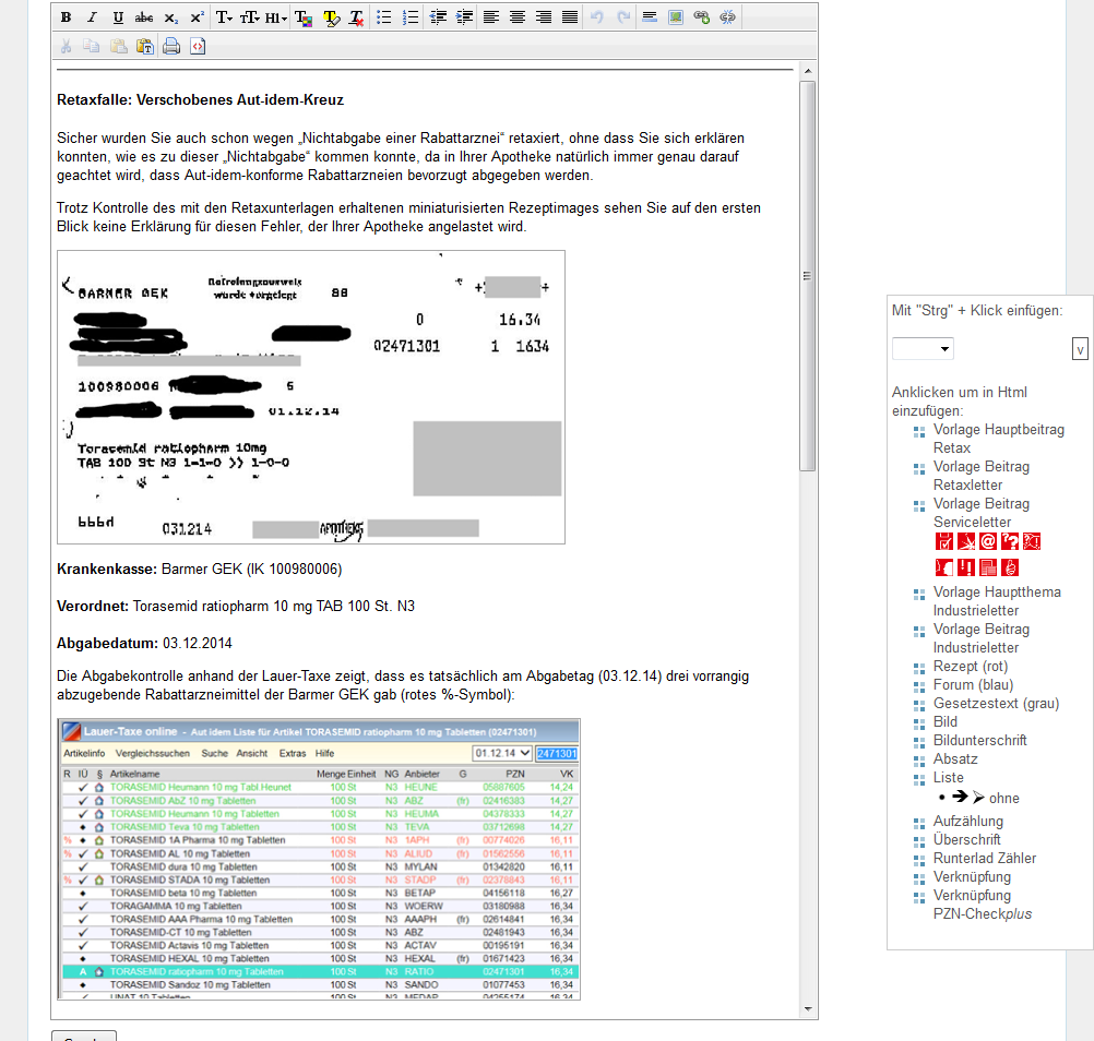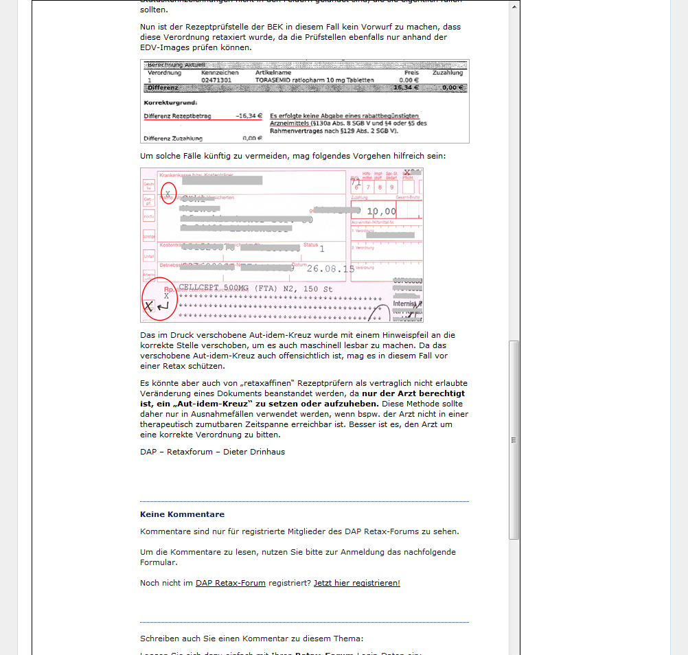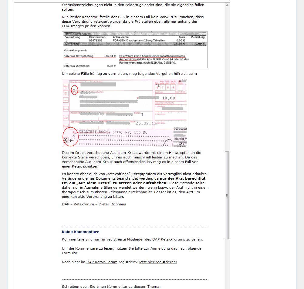 Im Retaxletter wird der Hauptbeitrag dann verkürzt angezeigt.