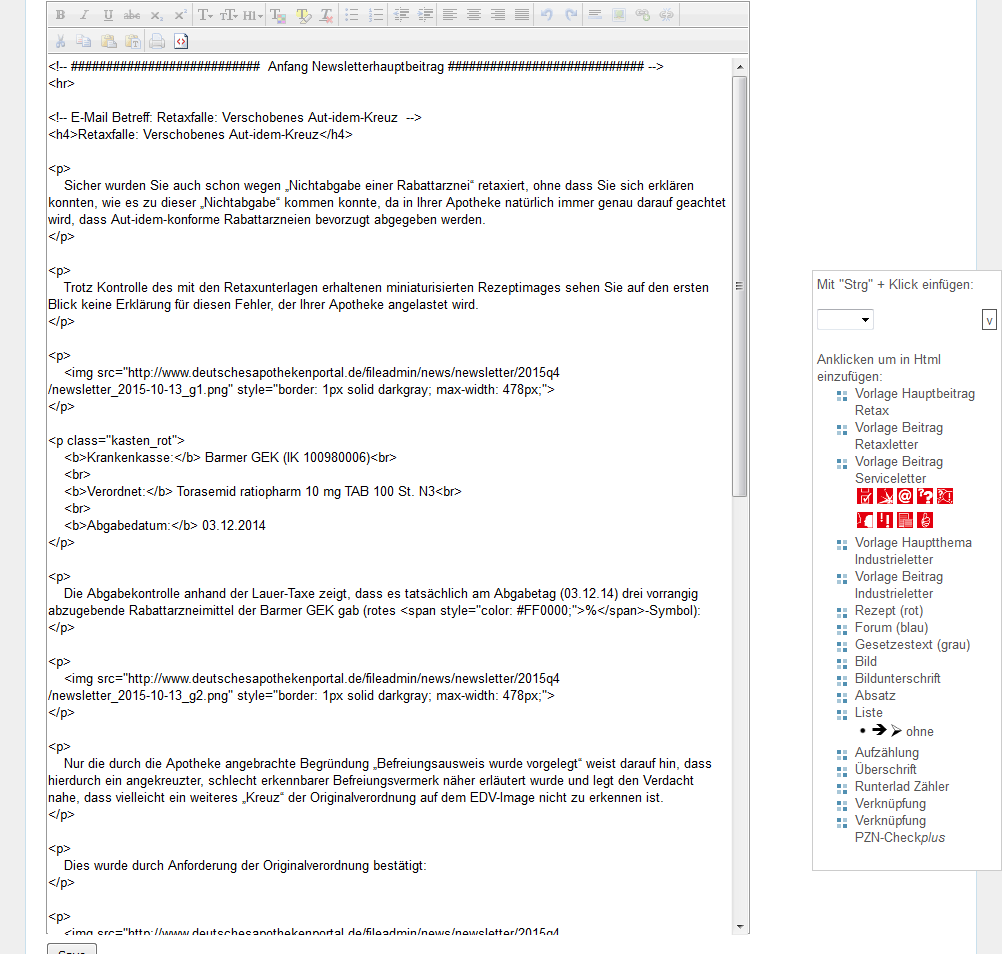 "<!--EOT--> an der Stelle einfügen, an der der Beitrag für den Newsletter abgeschnitten werden soll und auf "Save" klicken.