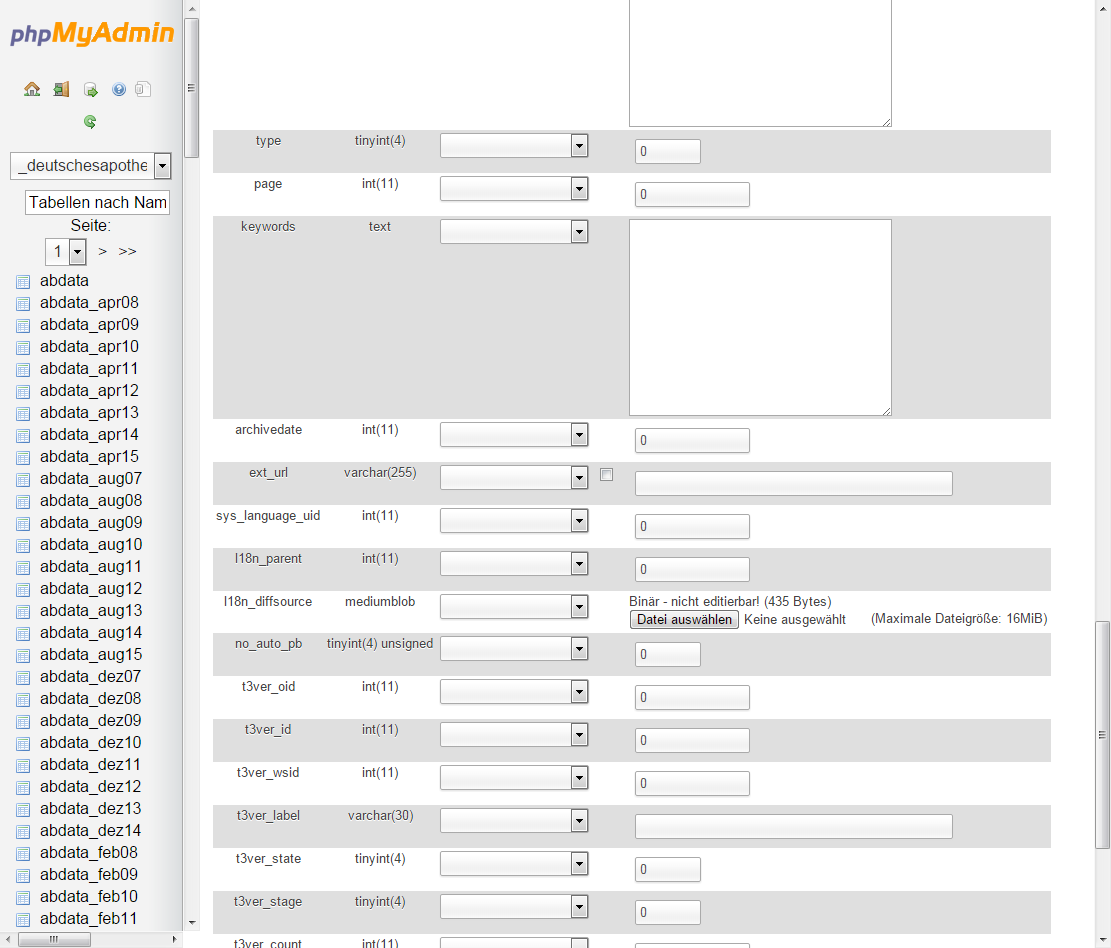 Das Formular zur Erstellung eines neuen Datensatzes erscheint.