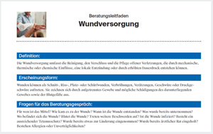 Bei welchen Wunden die Wundversorgung wie durchgeführt werden sollte, welche Fragen im Beratungsgespräch hilfreich sind und ab wann ärztlicher Rat eingeholt werden sollte, fasst der folgende Beratungsleitfaden zusammen.