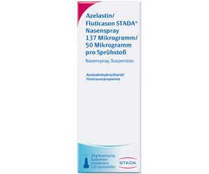 Das neue Generikum Azelastin/Fluticason STADA® 137 μg/50 μg/Sprühst. Nasenspray wird in der Therapie zur Linderung der Symptome der mittelschweren bis schweren saisonalen und perennialen allergischen Rhinitis eingesetzt, wenn eine Monotherapie entweder mit einem intranasalen Antihistaminikum oder einem Glukokortikoid nicht als ausreichend erachtet wird.