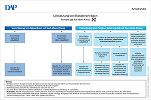 Diese Arbeitshilfe behandelt das Thema Rabattverträge ausgehend von einer Verordnung mit Aut-idem-Kreuz: Inwiefern sind die Rabattverträge zu beachten? Das Fließschema zeigt, wie die richtige Abgabe erfolgt. Dabei werden Originalarzneimittel, Importe und Generika berücksichtigt.