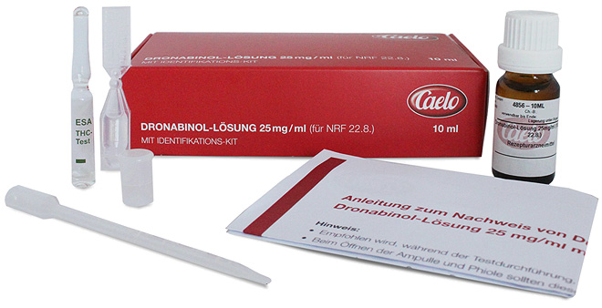 Herstellung von Dronabinol-Lösung 25 mg/mL (NRF 22.8.) mit der fertigen Dronabinol-Lösung 25 mg/ml (für NRF 22.8.) + Identifikations-Kit – Rezepturarzneimittel